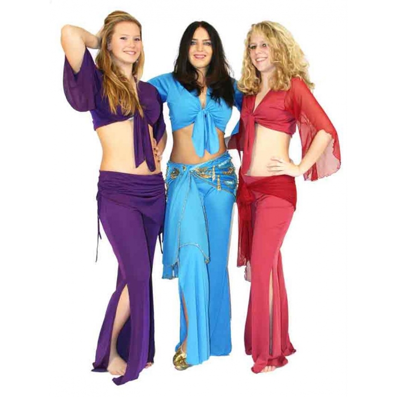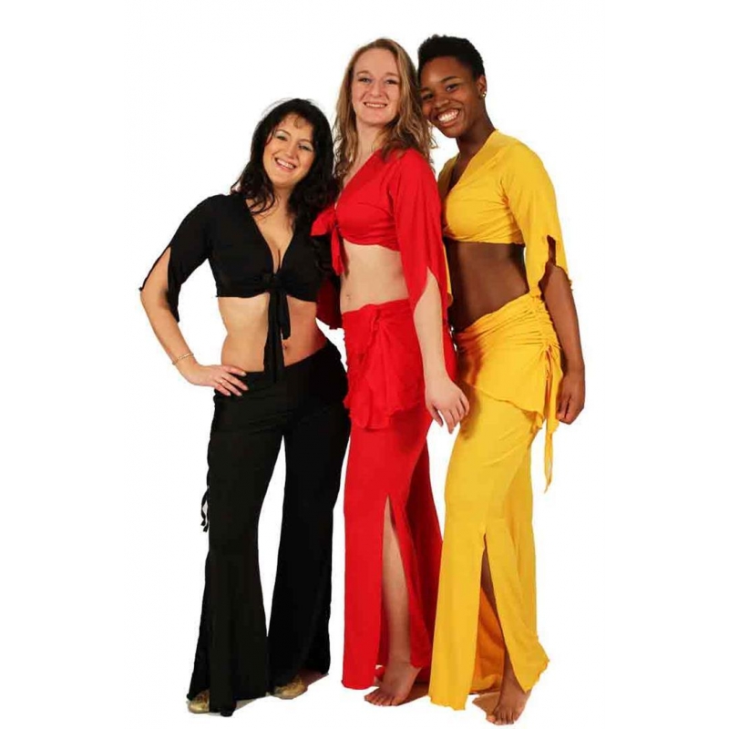 Hosen-Set mit MInirock bzw. Tribalhosen-Set aus komfortablem Lycra bestehend aus Bindeoberteil und Hose mit raffbarem Minirock oder Netztuch als Röckchen.