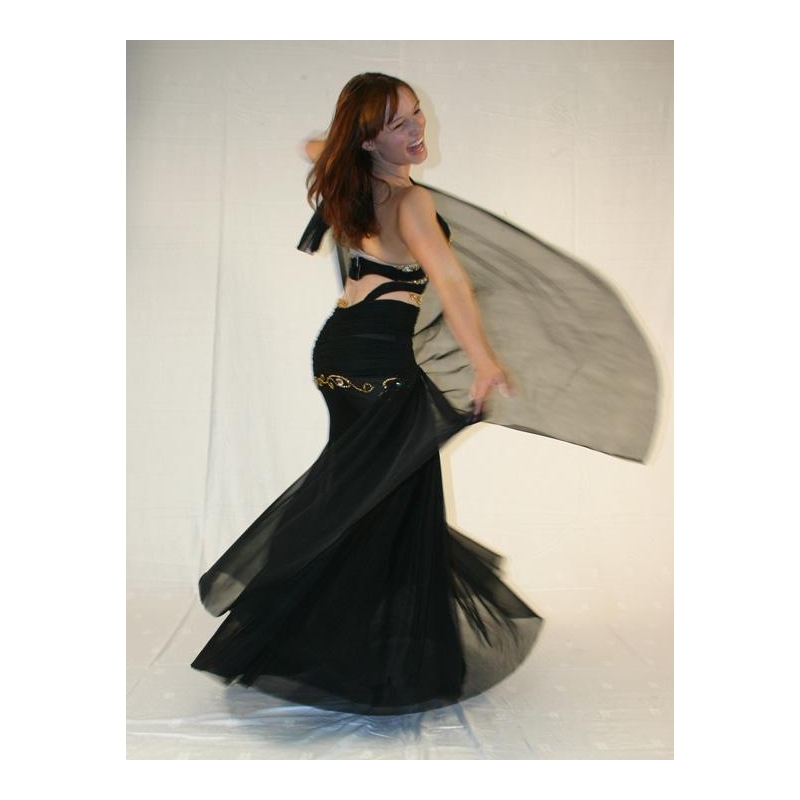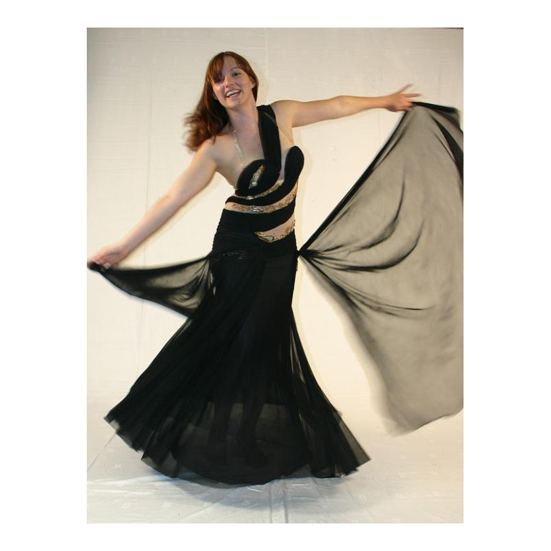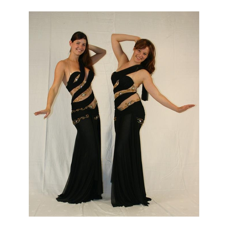 Ausgefallenes Bauchtanzkleid aus reichlich Netzstoff der besten Qualität gearbeitet und bestickt mit Swarovski- oder Kristallsteinen und Perlen und Pailletten.