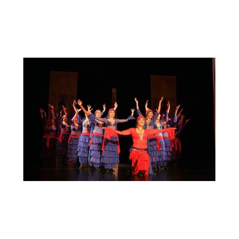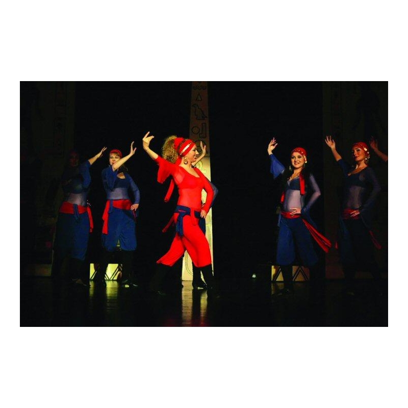 bestehend aus Netzbody, Hose, Rüschenrock, Kopfbedeckung und Hüfttuch