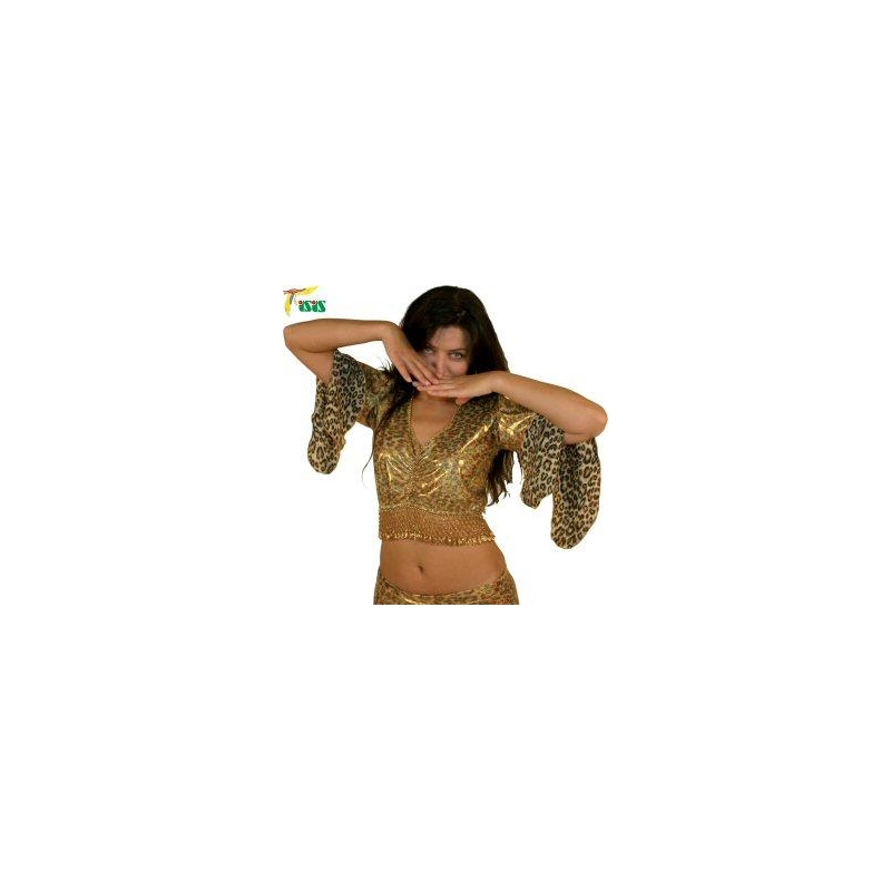 Kombination im Leopardenlook bestehend aus Oberteil mit Häkelborte und Rock aus Stretchsamt oder Lycra