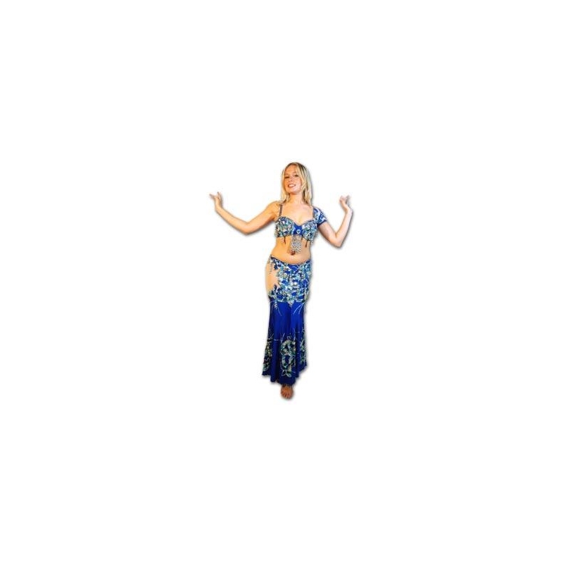 Extravagantes Kostüm aus Stretchsamt / Lycra. Rock mit Netzeinsatz auf beiden Seiten und sehr weitem Schnitt unten.