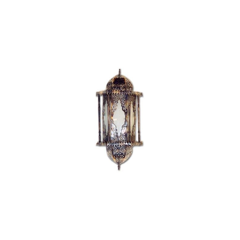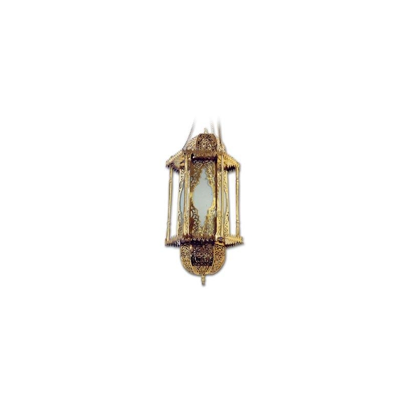 Mesbah, sechseckige Lampe aus Milchglas mit arabischen Motiven