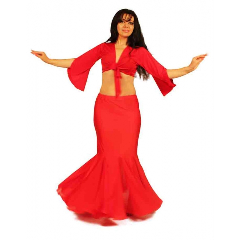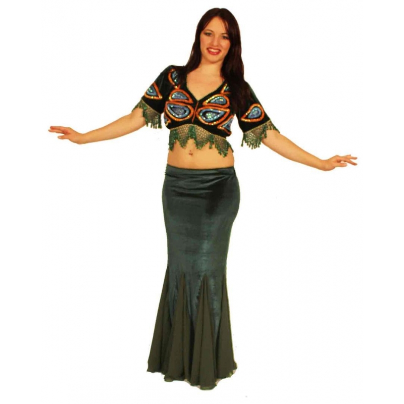 Meerjungfrau-Rock aus Stretchsamt oder Lycra mit 8 halbrunden Einsätzen aus Georgette-Chiffon