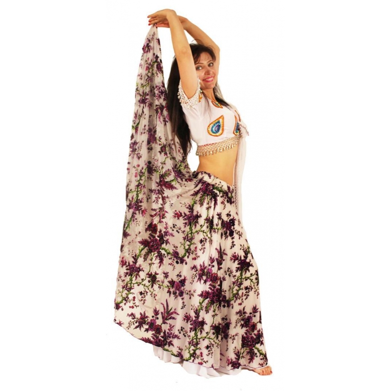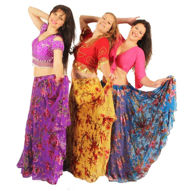 Geschlitzter Tellerrock aus Chiffon mit gemustertem Samtausbrenner und kleinen Strass-Steinchen