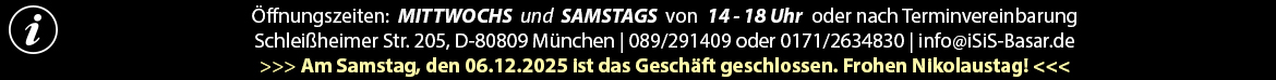 – An iSiS-Basar, Saif Fetih, Schleißheimerstraße 205, D-80809 München, E-Mail: info@isis-basar.de